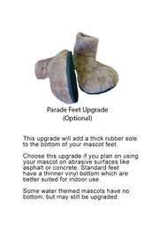 Planning to use your mascot for parades, outdoor events, or frequent appearances? The Parade Feet upgrade is a smart investment that dramatically extends the life of your costume. This premium upgrade features tough, slip-resistant rubber soles designed for concrete, asphalt, and rough terrain.